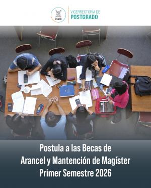 La Vicerrectoría de Postgrado inicia la Convocatoria de Postulación a la Beca de Arancel y Mantención para Magíster, correspondiente a estudiantes nuevas/os nacionales y extranjeras/os residentes en Chile, para el Primer Semestre de 2026.