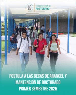 En su constante gestión para apoyar la excelencia del Postgrado USACH, nuestra Vicerrectoría de Postgrado inicia la Convocatoria de Postulación a Becas de Arancel y Mantención, correspondiente al primer semestre del año 2026, para estudiantes nuevas/os nacionales y Extranjeras/os residentes en Chile, y que inicien estudios conducentes al grado de Doctor/a en la Universidad de Santiago de Chile.
